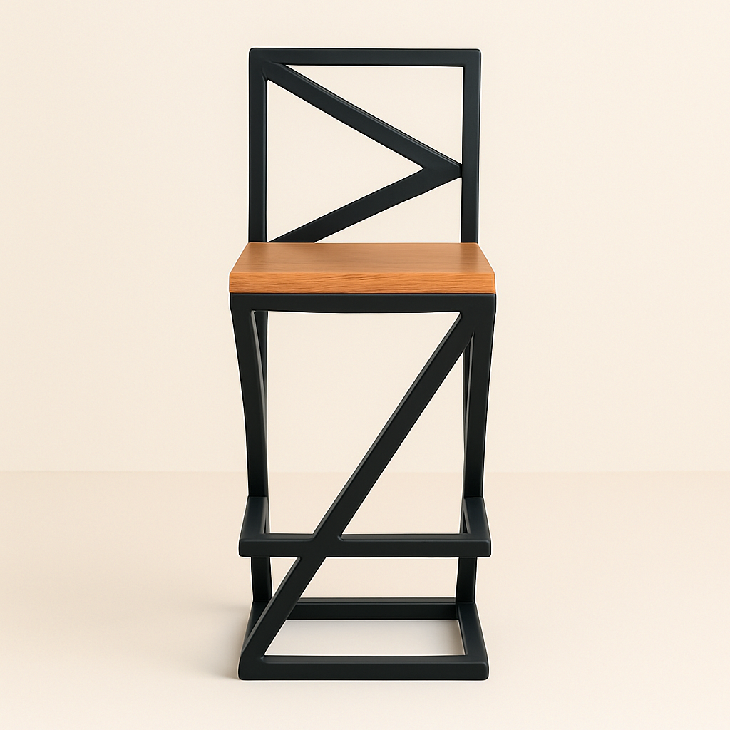 The Triarc Bar Chair showcases a bold, geometric silhouette defined by its intersecting triangular lines and sculptural base. Featuring a solid hardwood seat balanced on a striking powder-coated steel frame, it blends architectural precision with everyday functionality. The integrated backrest adds comfort without compromising its sleek, modern profile — making it a standout piece for contemporary kitchens, bars, and entertainment areas.
